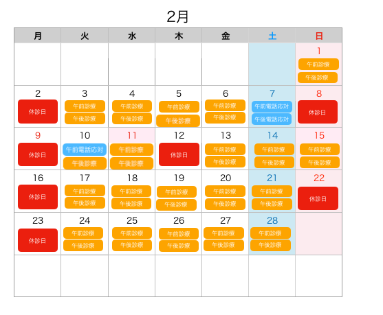 2月の診療日のお知らせ