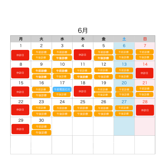 6月診療日のお知らせ